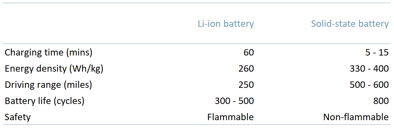 Exhibit 2 - Solid-state and Lithium-ion battery characteristics