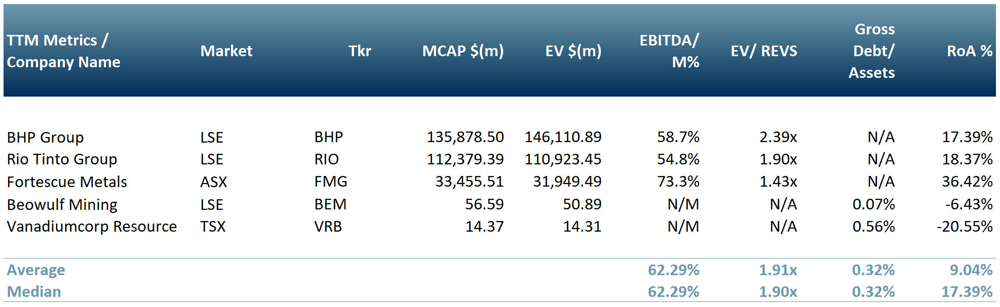 Exhibit 3 – Peer group of iron ore producers as 2nd of Sept 2021